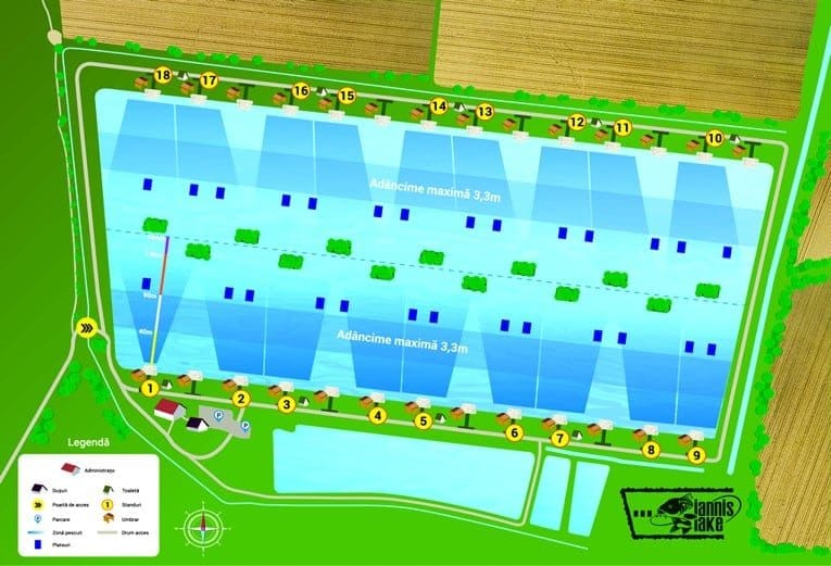 Iannis Lake is an artificial reservoir with a symmetrical rectangular shape, which is designed to give carp anglers equal opportunities in terms of depths and structures, as well as in terms of fishing distances.